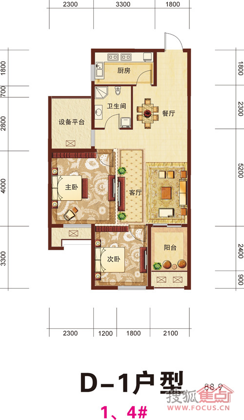 2室2厅1卫-东田擎天半岛88.90方1、4#D-1户型