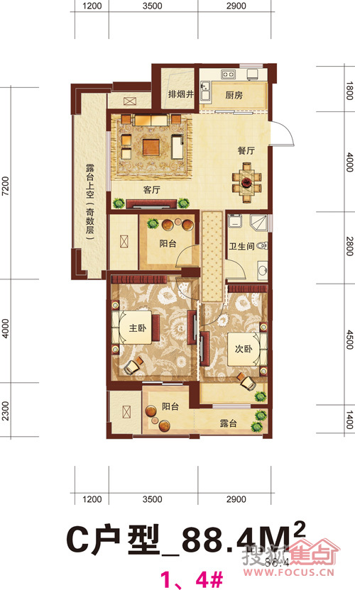 建面88.4m²
