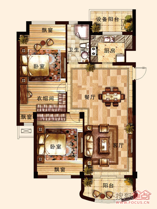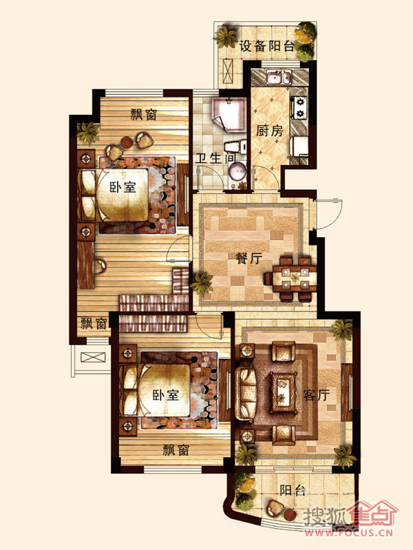 2室2厅1卫-2室2厅1卫-105平米H户型