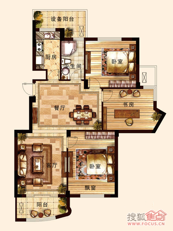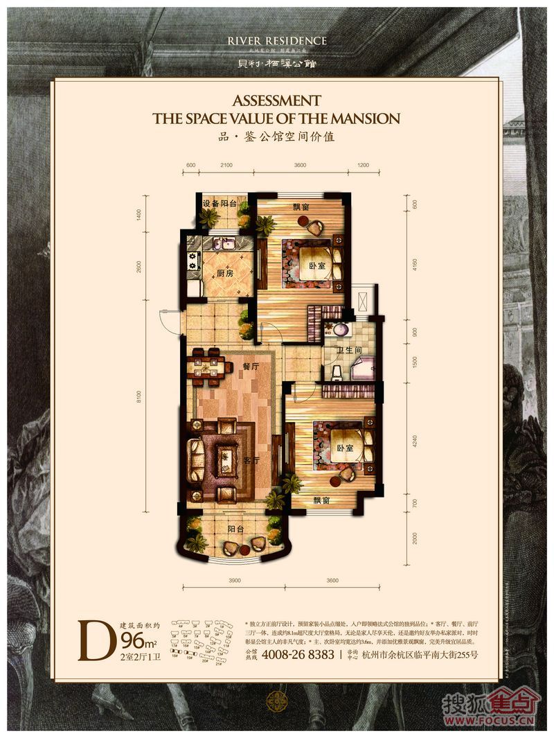 2室2厅1卫-2室2厅1卫-96平米D户型