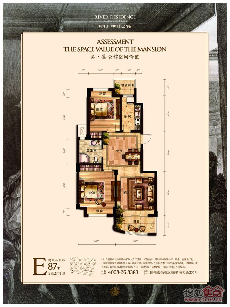 2室2厅1卫-2室2厅1卫-87平米E户型
