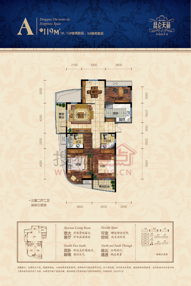 3室2厅2卫-约119方1、10#楼奇数层6#楼偶数层边套A户型