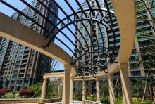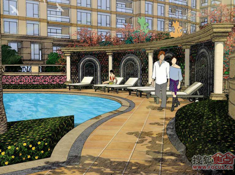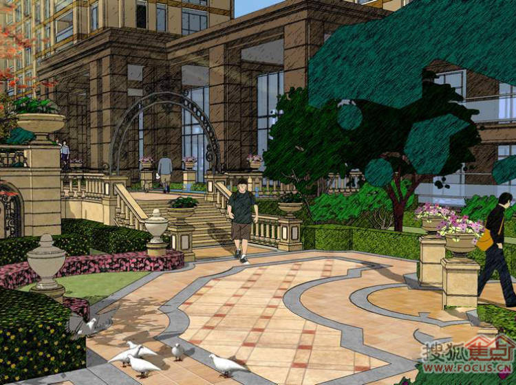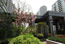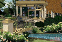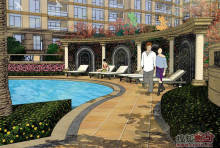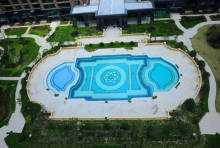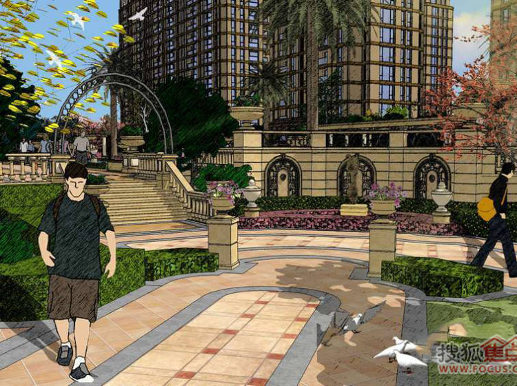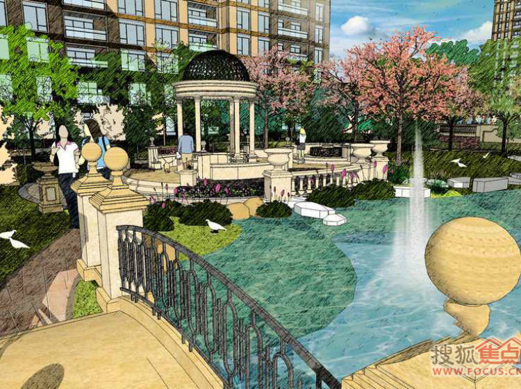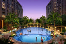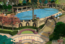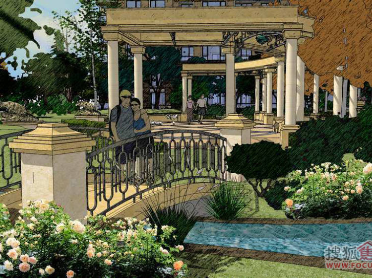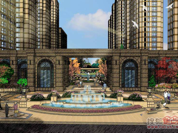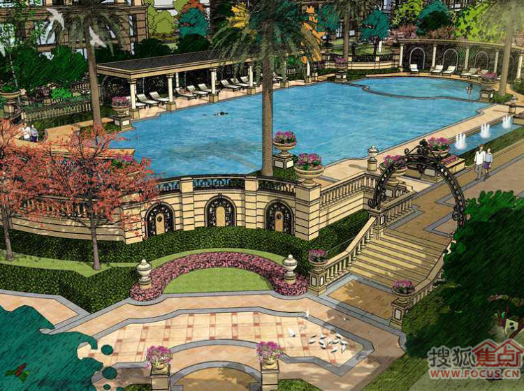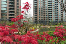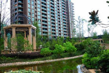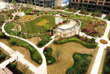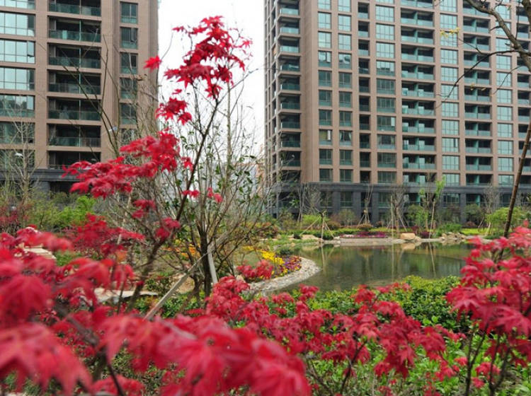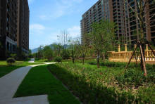 景观设计由园林景观设计单位安道国际主笔,以规则式布局体系由西向东依次排列而来,形成半开放的千亩轴对称式长方形内部景观区域。以“一轴、四点、十庭院”的理念,与十大入口庭院形成外分散,内聚合的造园格局。融合英式自然形态与法式规则园林的独特精髓,统领“水文生态、中心泳池、垂直绿野、绿野仙踪”四大内部景园,缔造“尊荣皇室后花园”生活。