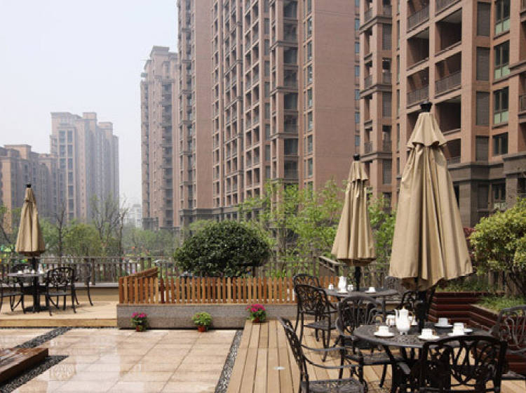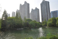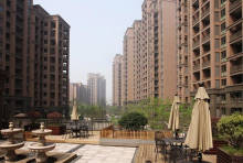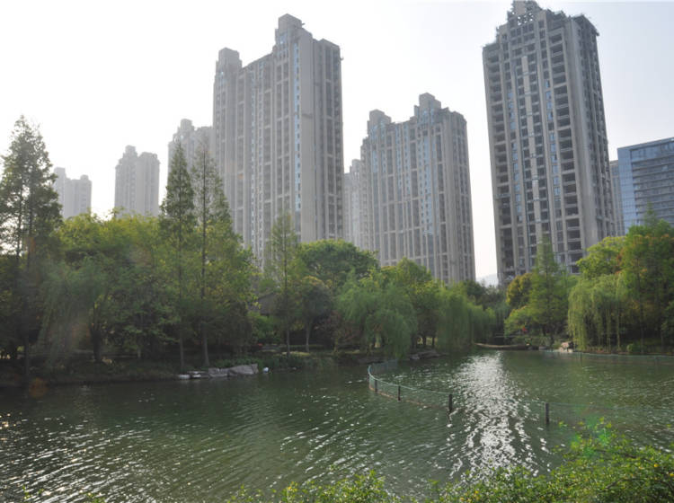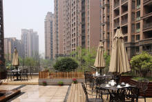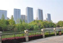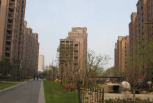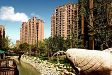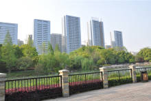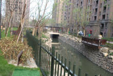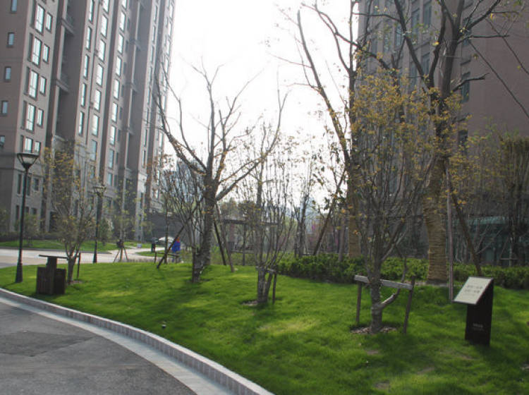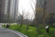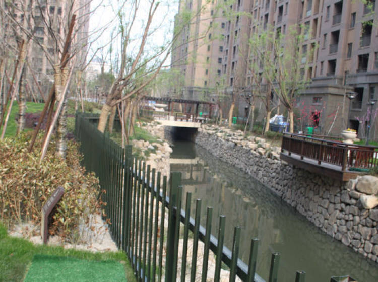 由于小区基本实现人车分流,使得整个小区就是一个大花园。没有汽车的干扰,小孩可以在小区里自由的玩耍,老人可以在小区悠闲的散步。小区花园中,水流是绿化的精神所在,贯穿小区的东西。水流和建筑让小区的花园形成了一个中央花园和两个组团庭院,从而形成了一个具有多层次的整体绿化系统.