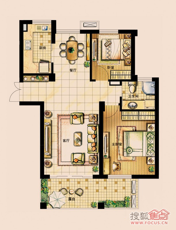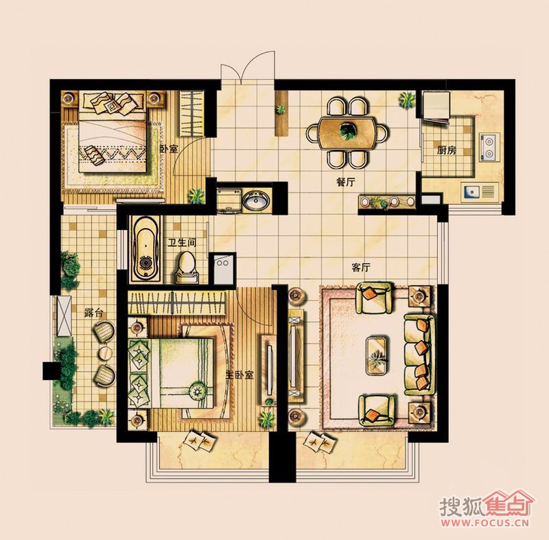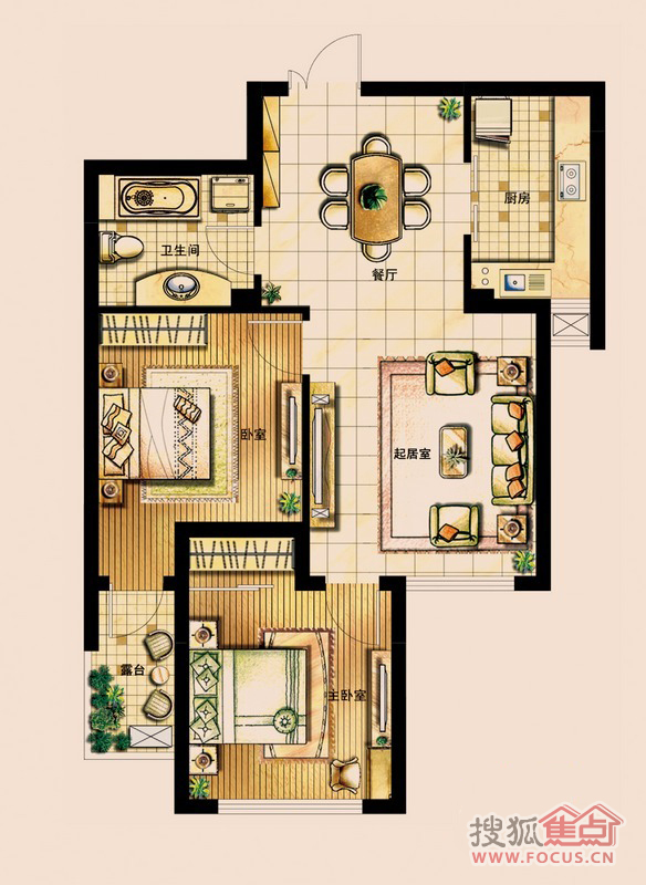 2室2厅1卫-一期1、2号楼奇数层F户型