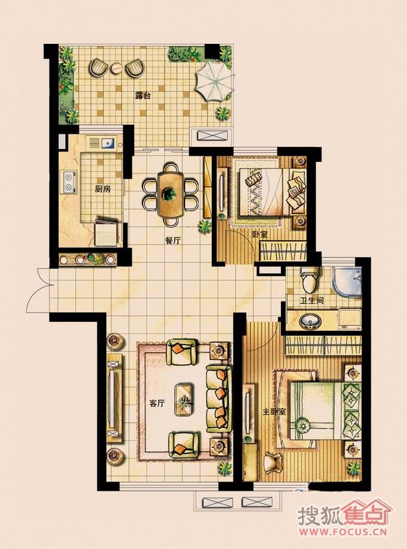 2室2厅1卫-一期1、2号楼偶数层F户型