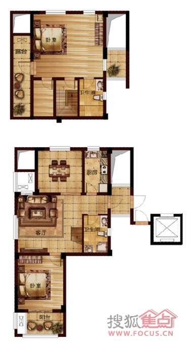 2室2厅2卫-D跃层两室两厅两卫户型