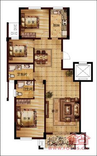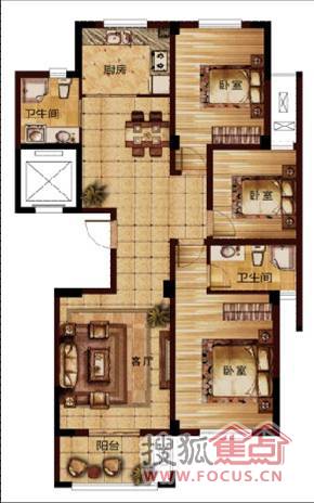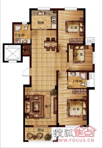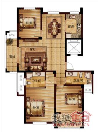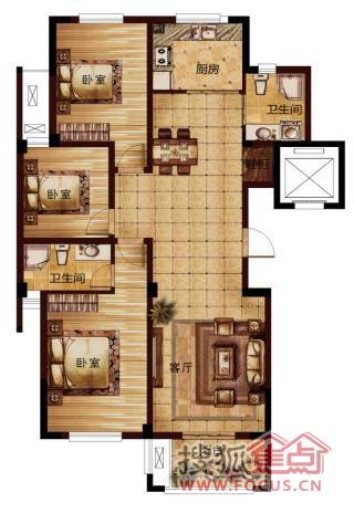 3室2厅2卫-F1三室两厅两卫户型