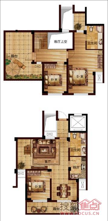 3室2厅2卫-E1跃层三室两厅两卫户型