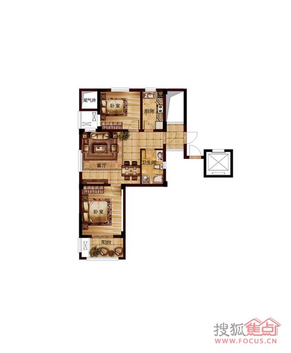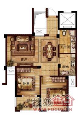 2室2厅1卫-E1两室两厅一卫户型