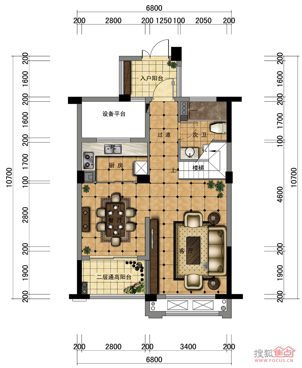 3室2厅1卫-B(上)户型
