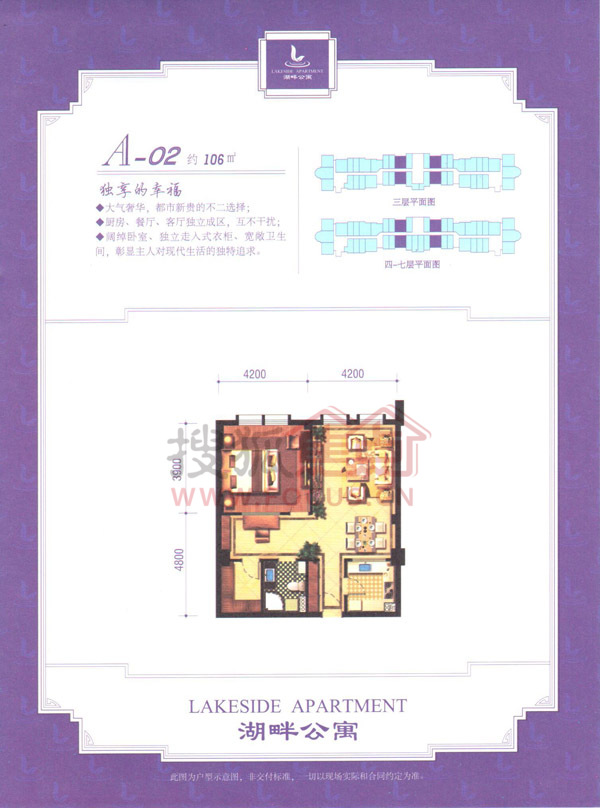 1室2厅1卫-湖畔公寓106㎡A-02户型