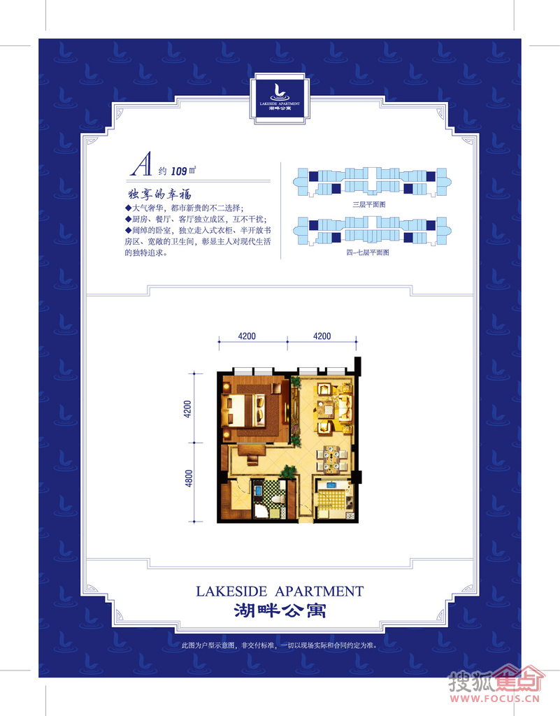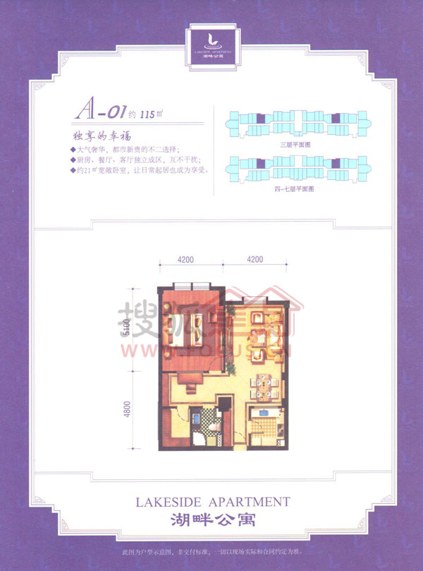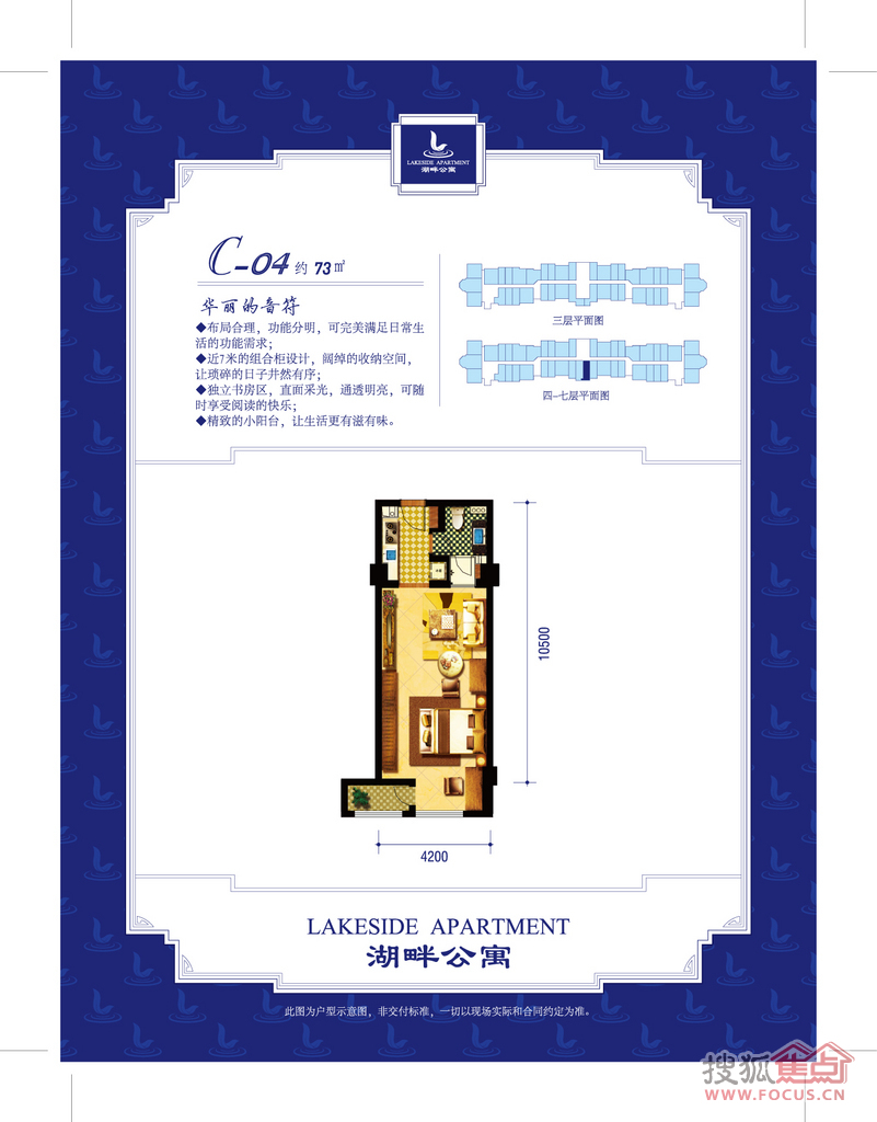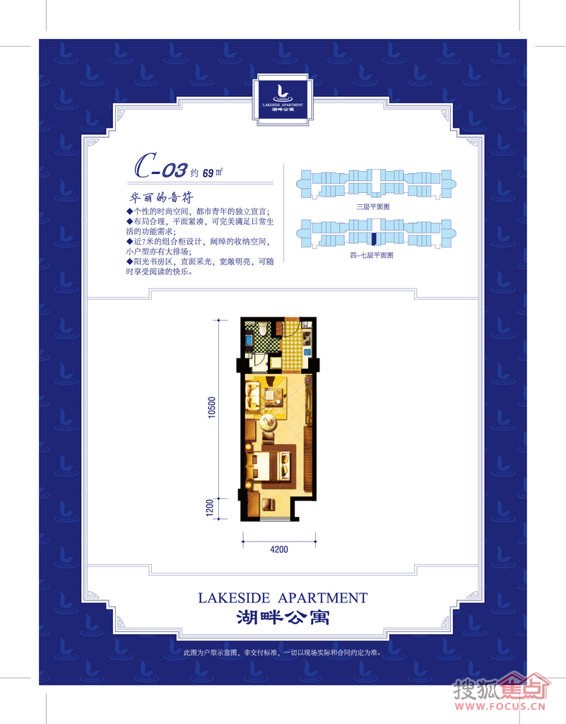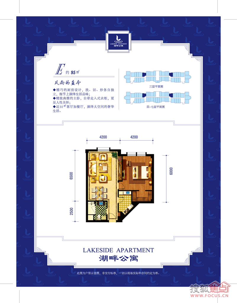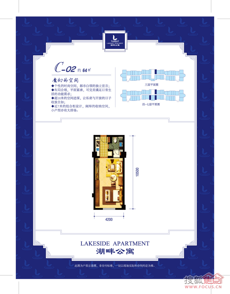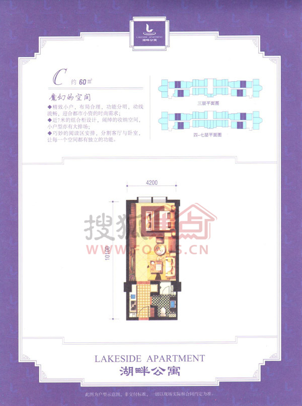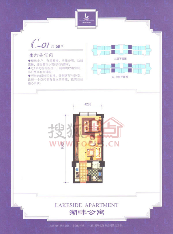 项目由一幢板楼、三幢点式小高层组成,50-100平方米主力户型,全精装酒店式公寓。