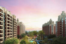 总面积约6.6万平方米,由6栋11层小高层组成。建筑布局采用低密度、高绿化的三板两进结构。建筑立面以红色墙砖为主,部分石材干挂,独具特色的顶部退台式设计,欧式城堡风味浓郁。社区全人车分流设计,在增加安全感的同时,也大大提高了绿化率,南北进深超过50米东西面宽超过120米的超大园林,或高大绿植,或堆坡造景,或童嬉区,正是全家蹓跶的好地方。