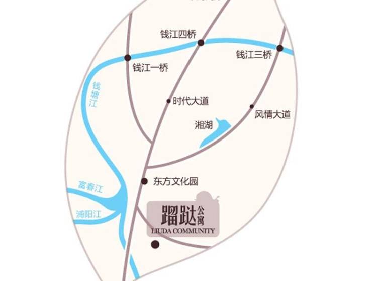 蹓跶公寓(注册名为荷韵江南),坐落于义桥镇中心,毗邻义桥镇人民政府,是三江口旅游圈、湘湖新城板块重要组成部分。北濒滨江、闻堰镇,东面有萧山城区包围,南与临浦为邻,西依浦阳江。