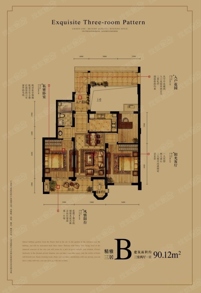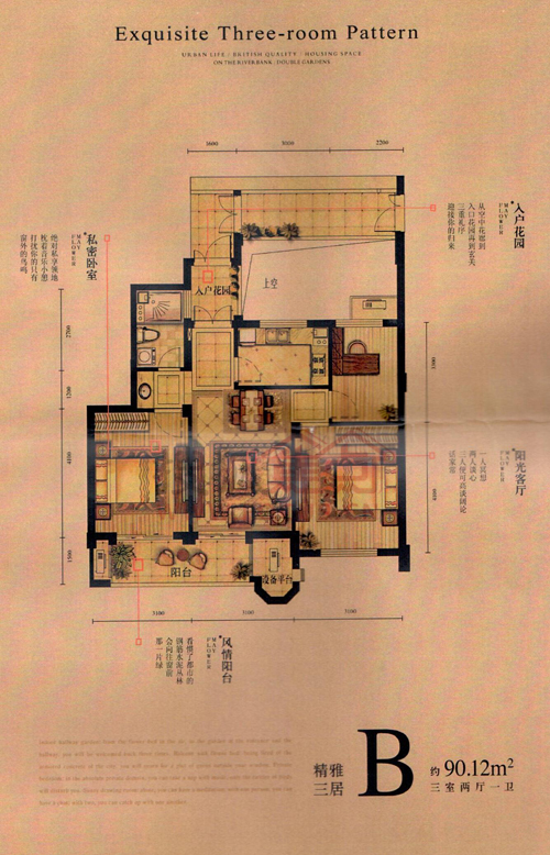 3室2厅2卫-约90方 精雅三居B户型