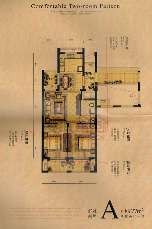 2室2厅1卫-约89方 舒雅两居A户型