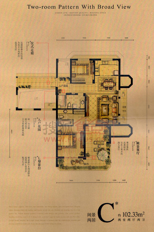2室2厅2卫-约102方 阔景两居C户型