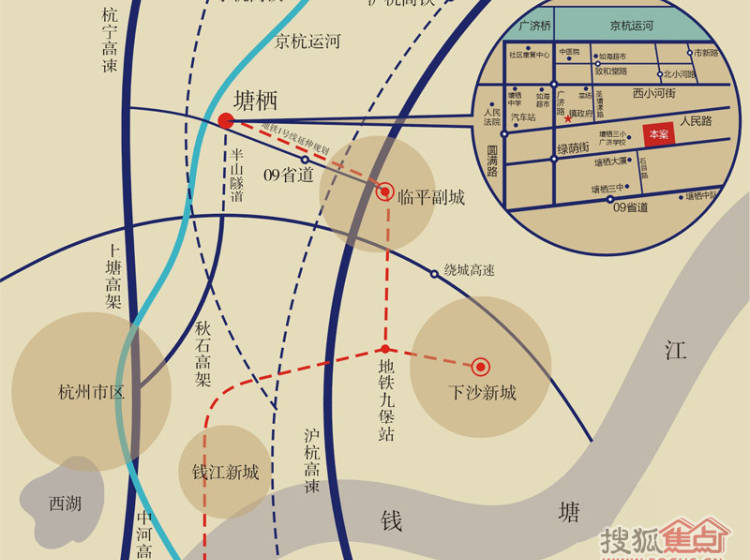 栖水珑庭,位于塘栖新城主干道——绿荫街北侧,公交319连接塘栖与临平副城,786、786(区间)直通余杭高铁,实现杭州、上海亲密对接。规划地铁1号线延伸段局部铺轨,B7快速公交款款而至,秋石快速路、申嘉湖高速、拱康塘康路,加速塘栖融入大杭州生活圈。出则风华正茂,意气逍遥;入则大隐于市,静观盛嚣。
