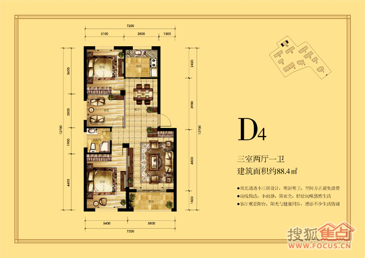 3室2厅1卫-D4三室两厅一卫