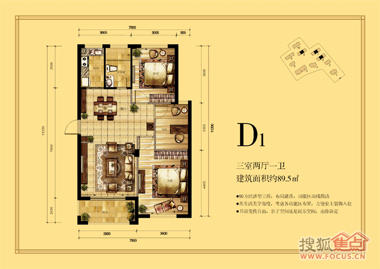 3室2厅1卫-D1三室两厅一卫