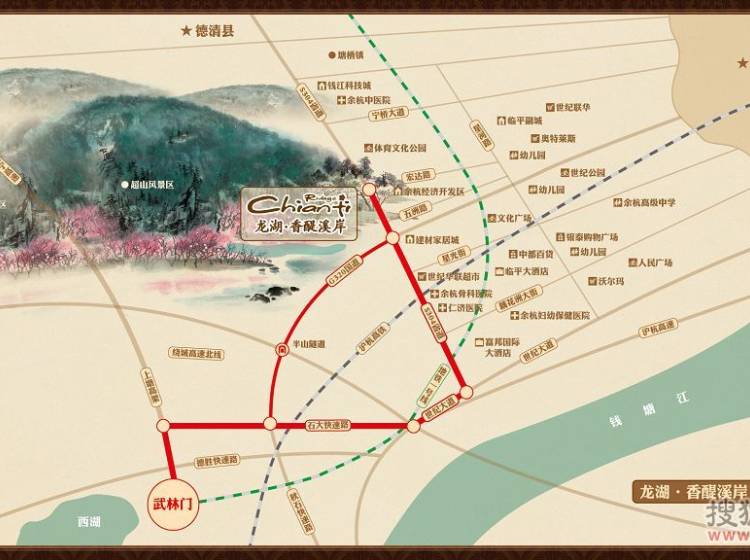 龙湖香醍溪岸项目位于杭州超山风景区旁,S304省道与宏达路交汇处,地近12万平方米,建筑面积约28万平方米,规划有合院别墅、观景高层。项目临山而筑,三面环水,尽享国家准超山风景区自然风光,五重园林景观,百年树种,承17年龙湖造墅经验,以“善待你一生”之理念,打造龙湖杭州溪岸低密社区。