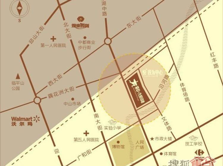 综合商场:沃尔玛、家乐福、中都百货、银泰百货、大红鹰超市、九曲营步行街