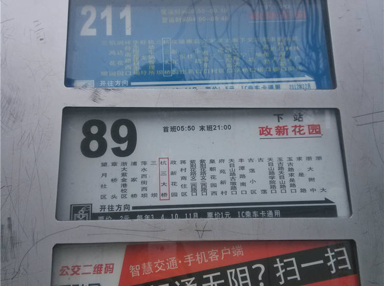 89路:三坝站,政新花园站,浦家桥站,蒋村商住区站,余杭塘路口站