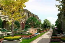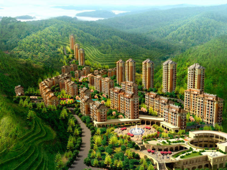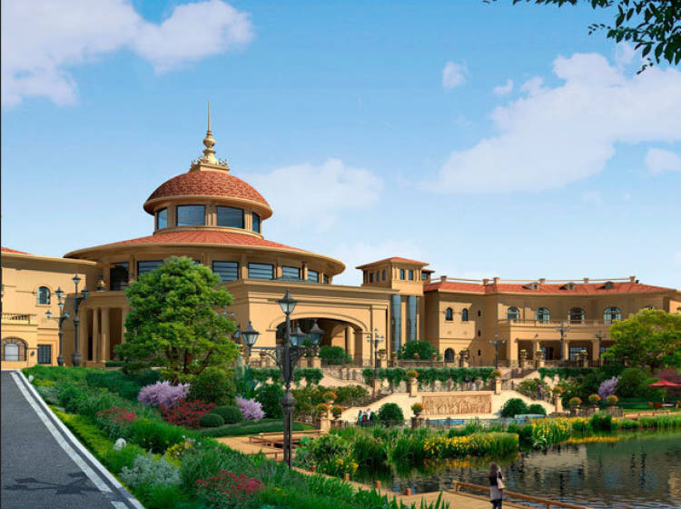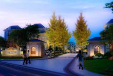 云都•美浓小镇项目总规划范围5.3平方公里,住宅建设用地1600亩。目前启动的为小镇南部沿大湖的一期区块,建筑面积约13万平方米。规划设立了多联排屋和景观电梯公寓,多联排屋中间套面积约为270平方米、边套面积约为330平方米;公寓户型面积为60、90、130-140平方米。区内规划配建医护中心、餐饮中心、休闲中心、健身中心、养生康体中心、山体观景公园、生态农作园等设施。