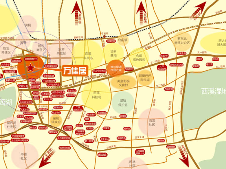 B、区域巨额消费需求优势:依照政府规划,将打造未来科技城、引进高科技人才的海创园、阿里巴巴淘宝城、英皇影视文化村等一批重点项目,人口将突破60万,催生了周边近160亿元的装饰家居消费量;