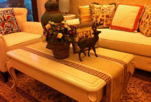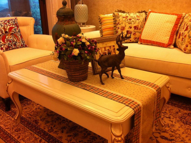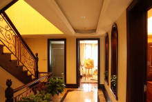 众安白马山庄秉承赖特的有机建筑理念,打破公式化的居家原则,取山建宅,依势规划,于自然生长建筑,以建筑衍生自然。去除一些不必要的装饰,强调材料的自然本色。对于建筑的平面及立面设计更接合地形与环境使建筑与自然环境融为一体。平缓的四坡屋面设计,不仅能令触及于此的目光深感大气庄重的气魄,并使得步入室内的阳光与轻风更加柔和。宽大的屋顶在视觉效果上弱化住宅的高度,使其与自然更贴近,呈现融合的协调状态。