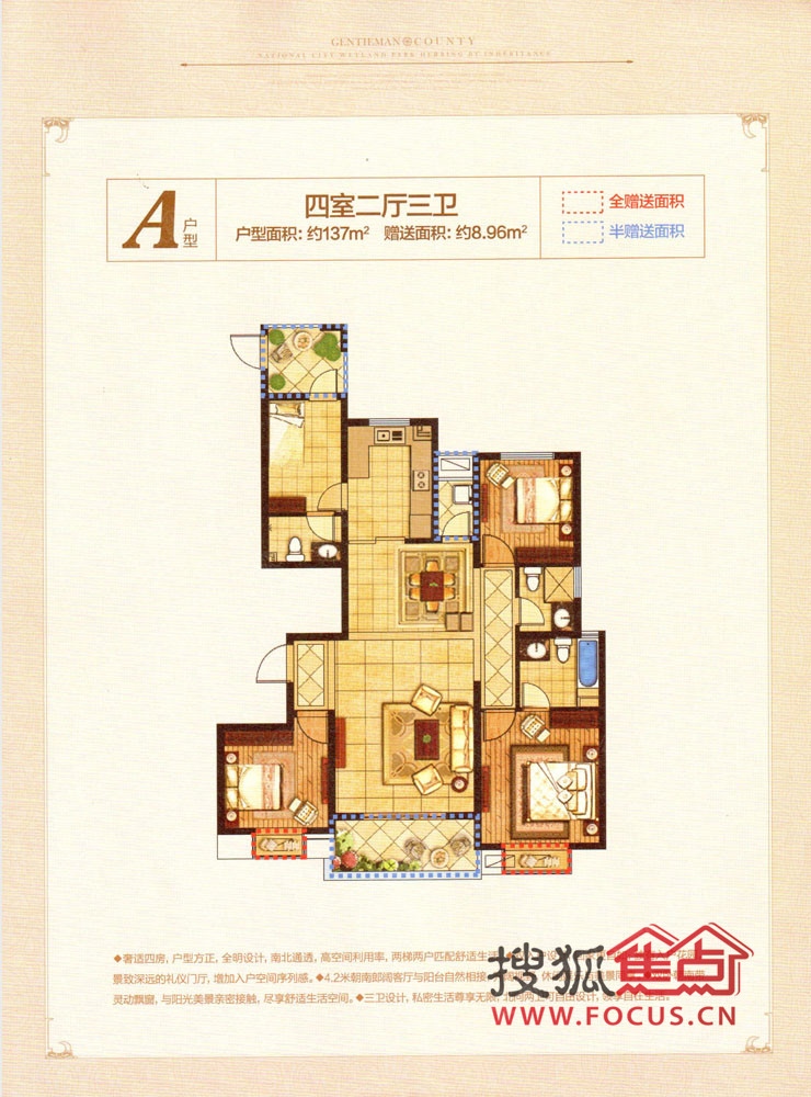 4室2厅3卫-经建绅世郡90方排屋户型图