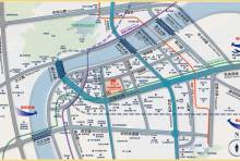 市区出发沿中河高架上复兴大桥过江至滨江区,在江南大道下桥右转,行驶至火炬大道,即达到项目现场
