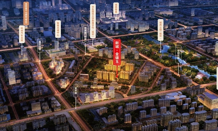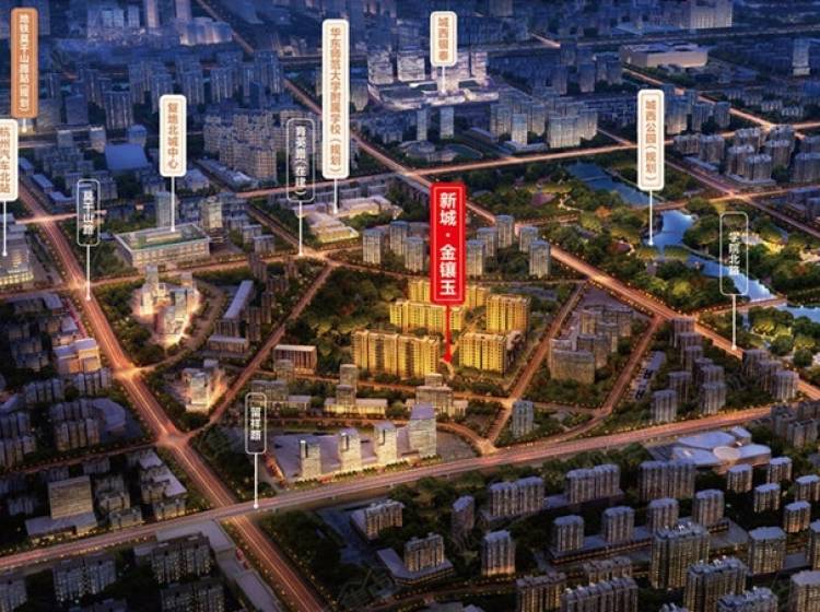 新城地产2013年9月摘得申花板块蓝孔雀综合体【杭政储2013(64号)地块】,该宗地块如一块奢华美玉镶嵌在蓝孔雀腹地,被700余亩的生态园林掩映,尽享申花板块地铁贯穿,大型综合体环绕,高等学府林立等舒适生活氛围,其尊享价值不言而喻,故得推广案名“新城.金镶玉”。