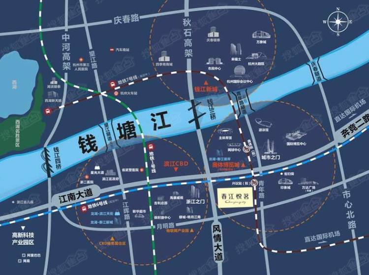 萧山 风情大道月明路交叉口(售楼处:滨江区江南大道与江虹路交叉口)