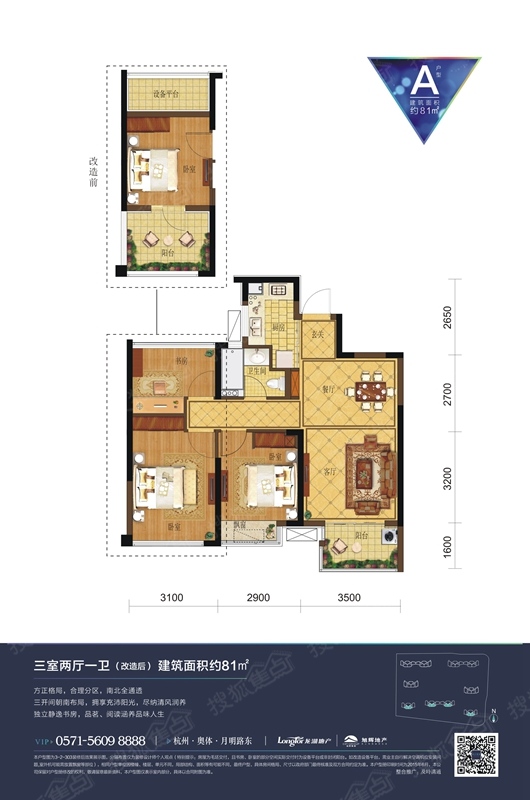 春江悦茗总建筑面积约11万方,共7栋高层,户型以精致三房约81平方米,轻奢三房约90平方米,舒适四房约119平方米为主。