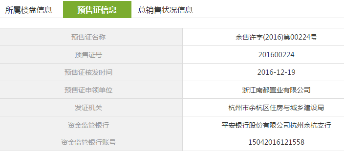 - 余售许字(2015)第00181号 详情发证时间 2015-10-29绑定楼栋57号楼,59号楼,70号楼