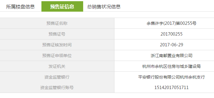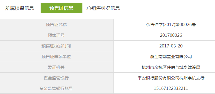 - 余售许字(2015)第00215号 详情发证时间 2015-11-27绑定楼栋71号楼,74号楼,77号楼,78号楼