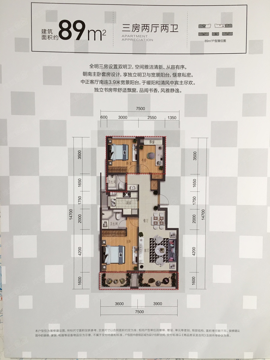 富力新线公园住宅区以两栋高层和三栋小高层组成,户户推窗可见中央园林全景。主力户型为建面约89方的全明三房,辅以建面约115方和130方户型。户型方正全明、南北多景观面、面宽尺度开阔,大大提升居住舒适度。而作为以精装闻名中国地产界的富力地产,此次也倾注了多年的精装修为,从酒店般的入户大堂,到时尚而极富品位的户内环境,营造一步到位的精工生活。