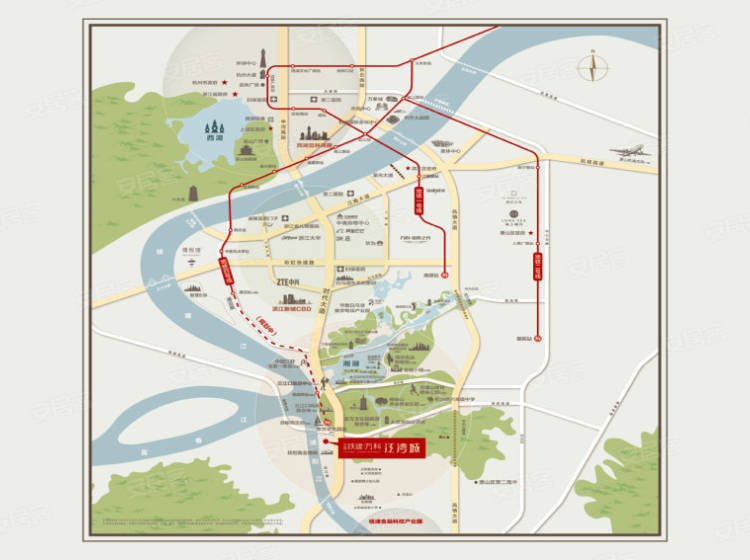 湘湖地铁站出发:从地铁站出发到风情大道,行驶6.8公里,右转进入亚太路,5公里后左转进入时代大道,直行过绕城后约400米到项目现场。