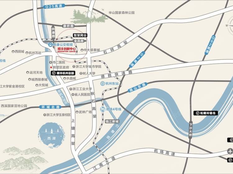 上塘高架:距石祥路入口7分钟左右车程,30分钟可达武林商圈;