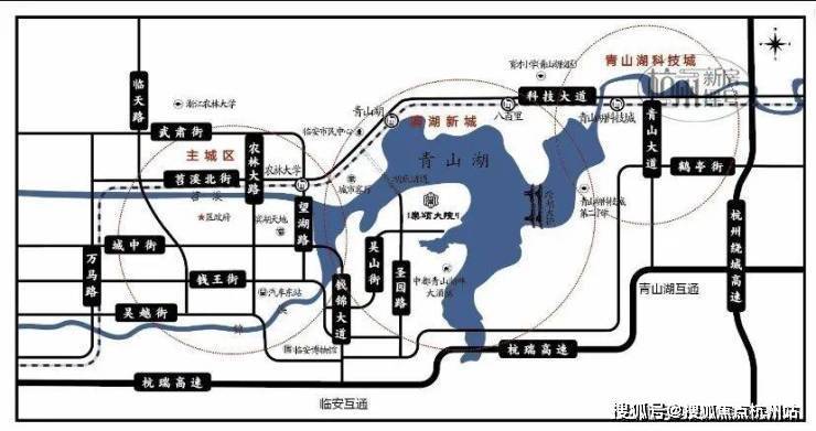 距离临安互通约2km、距离地铁16号线青山湖站约3km、项目门口就有公交车站 805、807 出行非常方便。