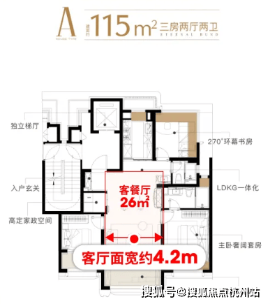 这样的设计支撑起了约26㎡的巨幕通厅,约4.2米的南向客厅开间。这样的设计,远超同面积段的常规水平,搭配全景落地窗与南向阳台,空间通透感直接拉满。餐厅区域更是能轻松放下6人圆桌,让餐厅从单纯的“吃饭区域”,升级为家庭核心社交厅。