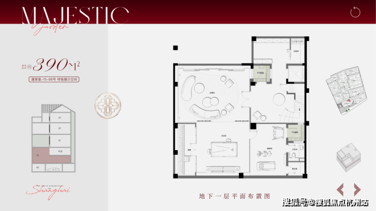 叠拼面积段约195-310㎡,分为1-2F下叠、3、4、5F为中间的平层面积236㎡,6-7F为上叠,计56套。