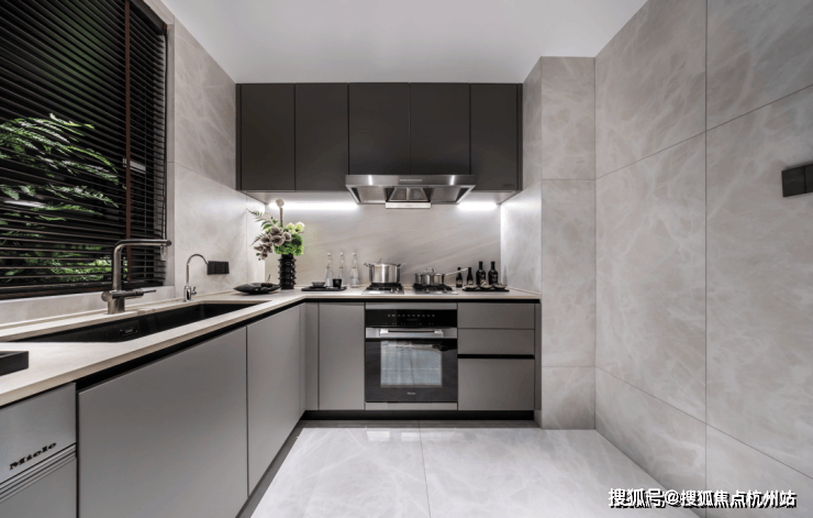 厨房配置了国际顶级厨电品牌之一的 美诺Miel e(或同等档次品牌):蒸&烤一体机,两灶三眼灶台,洗碗机,抽油烟机及冰箱的5件套超高规格,全面提升厨房“含金量”。