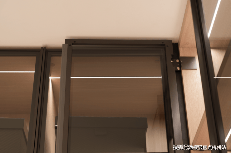 极简审美,从背景墙开始一路延展, 无边框隐形门,以及简化的金属踢脚线 ,让立面保持完整如一。