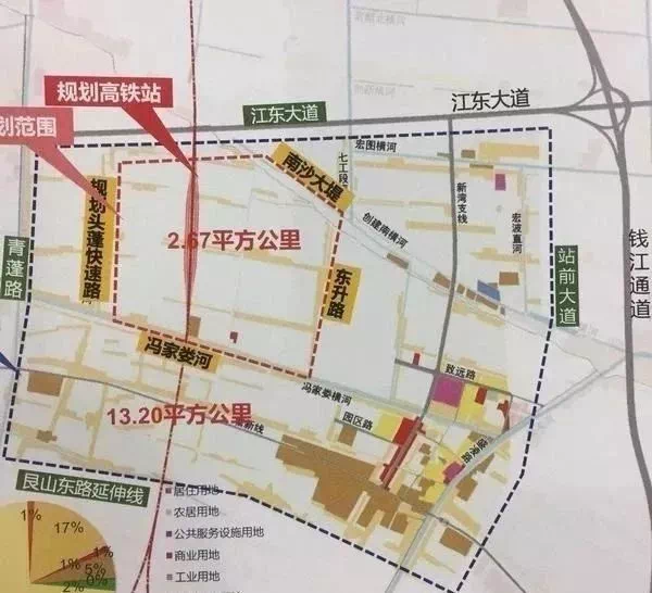 江东站是杭州打造“三城一枢纽”的重要方面,是钱塘新区腾飞的助推器。值得注意的是钱塘新区段的用地规模是较大的,另外根据此次批前公示,该工程在钱塘新区境内的路线也已清晰,大致就是从新湾街道江东站经义蓬街道延伸到靖江街道。