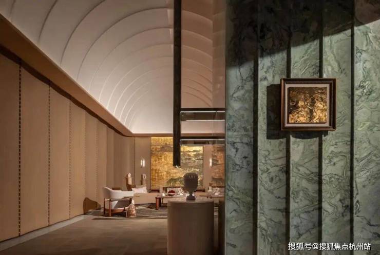 地上二层是约5米高的架空层,作为杭州首个与西泠印社杭州书画社深度合作住宅项目,杭序府楼幢架空层内打造西泠文房艺术空间,拥有金石文化定制主题会所服务系统,提供独具杭州文脉特色的定制化社区服务。