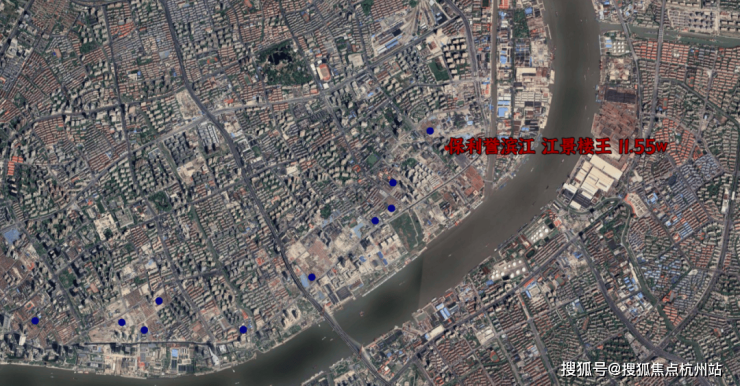 【保利誉滨江】也是杨浦滨江蕞后一个拥有无遮挡江景产品的地块。根据统计,杨浦滨江南段还有9幅住宅土地尚未出让,但均无法提供全景江景产品👇(蓝色的点为待出让住宅土地),因此项目的江景资源更为可贵。