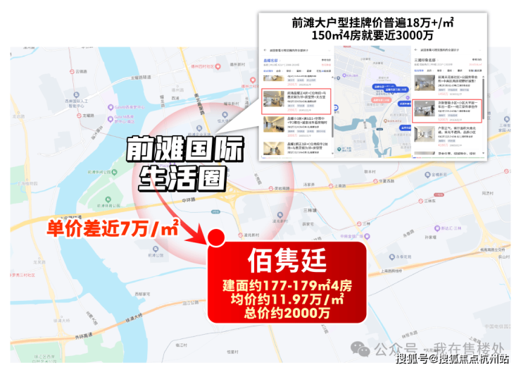 哪怕对比西侧待售新房,优势也很清晰:那边大户型预计均价约14万/㎡,佰隽廷又拉出了 约2万/㎡价差。
